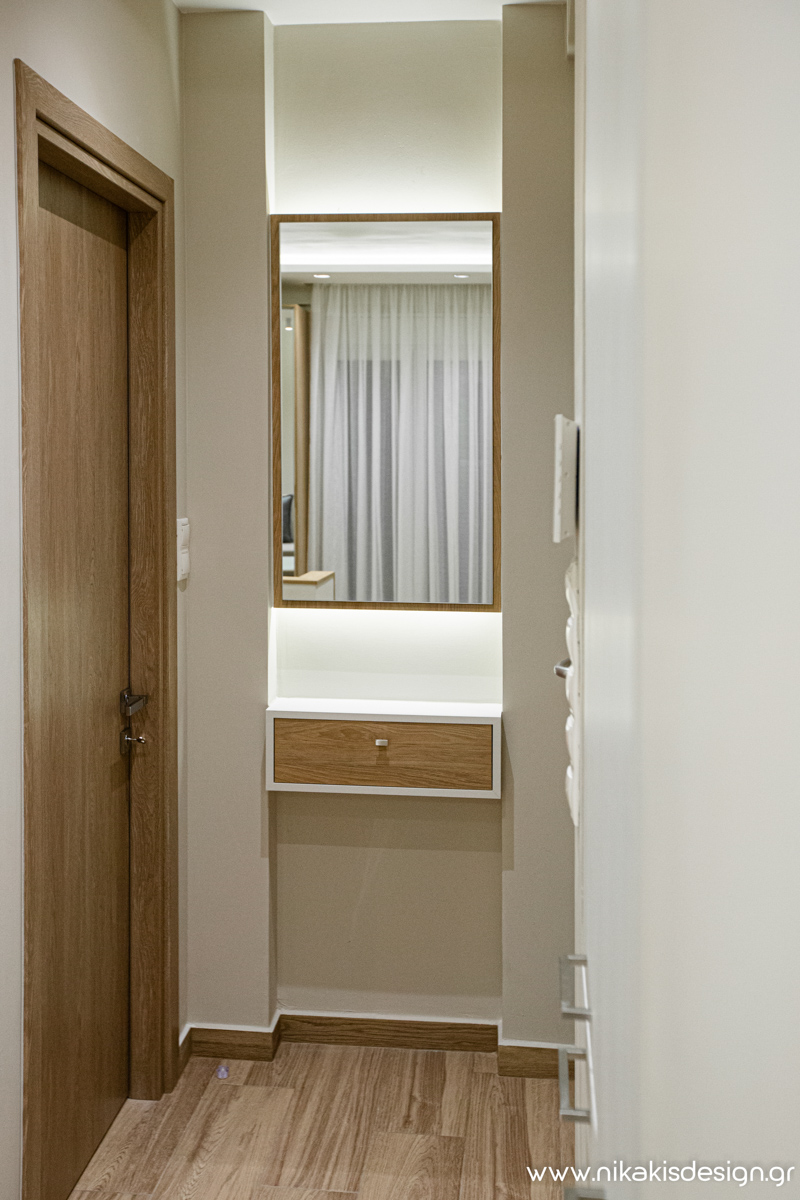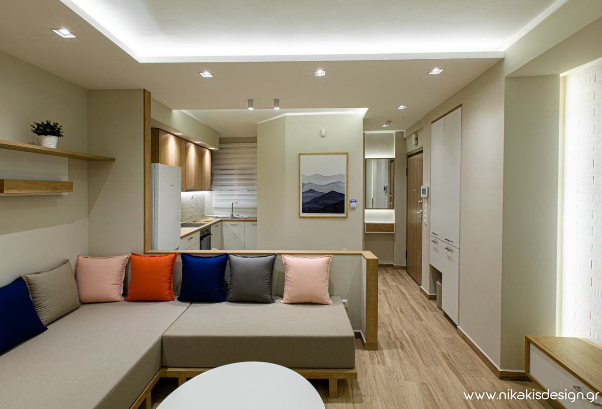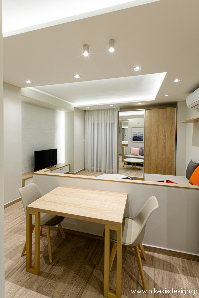 Περιγραφή: Ένα νέο project ολοκληρώθηκε στην καρδιά της πόλης της Κομοτηνής κοντά στο ιστορικό κέντρο. Σε απόσταση αναπνοής από τον πεζόδρομο Ελ.Βενιζέλου, έναν από τους πιο εμπορικούς και πολυσύχναστους δρόμους της πόλης, πραγματοποιήθηκε η ανακαίνιση διαμερίσματος μιας πολυκατοικίας του ’70 μαζί με τον ταυτόχρονο διαχωρισμό του. Στόχος της αναδιαμόρφωσης ήταν η δημιουργία δύο μικρότερων κατοικιών απευθυνόμενων κυρίως στον φοιτητικό πληθυσμό της πόλης. Έτσι από το αρχικό διαμέρισμα των 66τ.μ. προέκυψαν ύστερα από τον διαχωρισμό, μία γκαρσονιέρα με επιφάνεια 29,5τ.μ. και ένα δυάρι με επιφάνεια 36,5τ.μ., πλήρως λειτουργικά και εξοπλισμένα ώστε να καλύπτουν όλες τις ανάγκες τις σύγχρονης κατοίκισης.