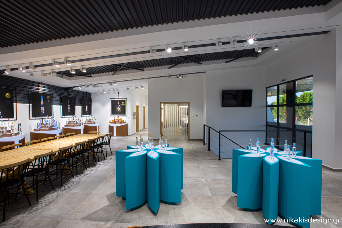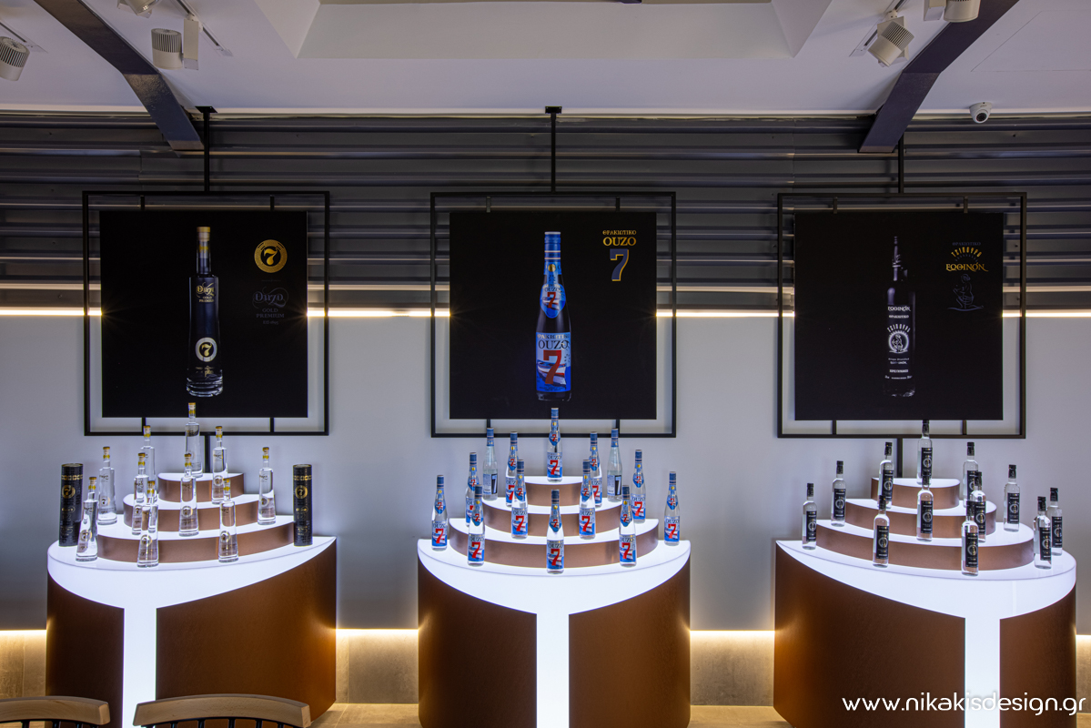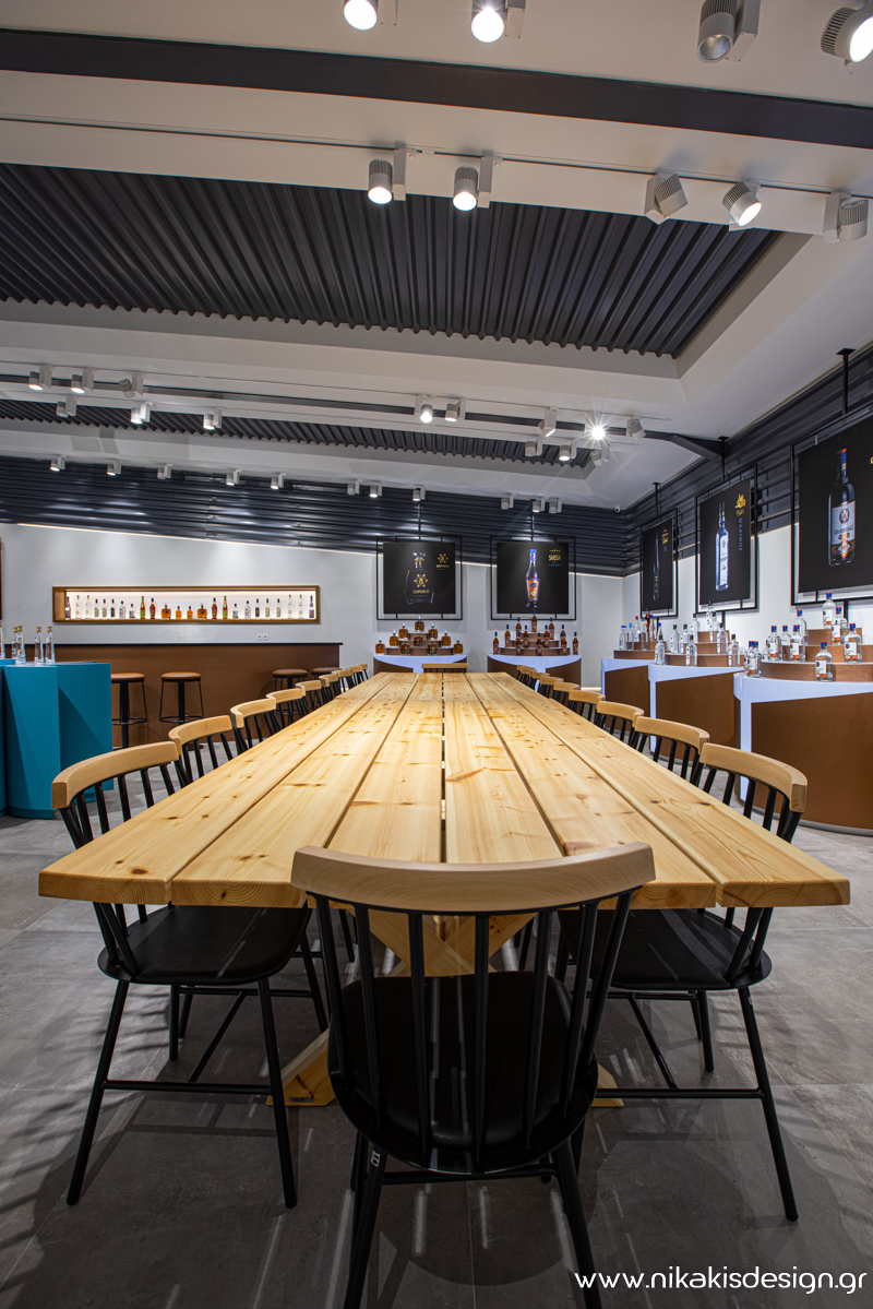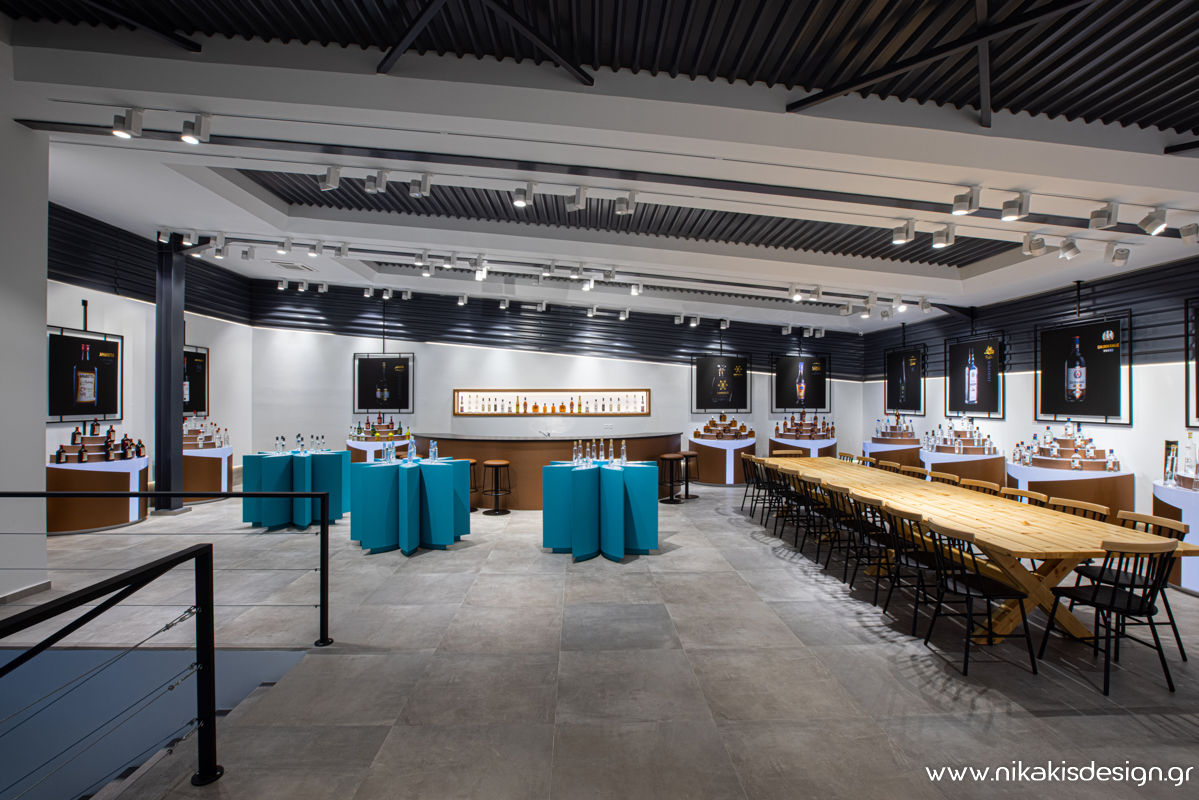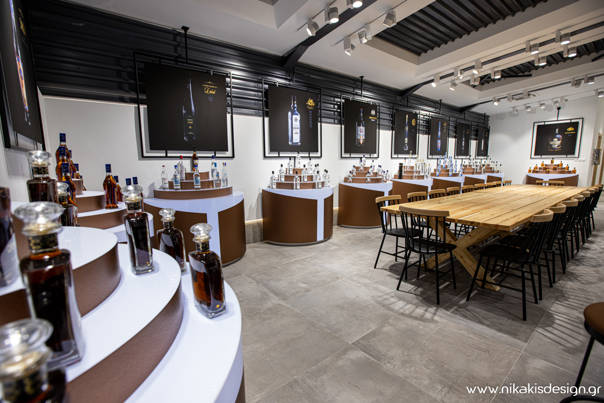 Περιγραφή: Στη βιομηχανική περιοχή της πόλης της Κομοτηνής ολοκληρώθηκε το νέο project της καθ’ ύψος επέκτασης του κτιρίου της Ποτοποιίας-Οινοποιίας Θράκης καθώς και της ανάπλασης της κύριας όψης του. Στον νεόδμητο 1ο όροφο ήταν απαραίτητη η δημιουργία ενός showroom για την έκθεση αλλά και την δοκιμή από τους νέους πελάτες της επιχείρησης των προιόντων της ποτοποιίας, αλλά και η δημιουργία ενός οργνωμένου meetingroom για τις απαραίτητες συναντήσεις μεταξύ των μετόχων αλλά και των νέων πελατών. Με βάση λοιπόν τον χαρακτήρα της ευρύτερης περιοχής κυριάρχησε στο σχεδιασμό το βιομηχανικό designτόσο στην εσωτερική διαμόρφωση του νέου ορόφου όσο και στο νέο περίβλημα του κτιρίου. Στο εσωτερικό πρωταγωνιστικό ρόλο έχει το μέταλλο, με κυρίαρχη τη μαύρη λαμαρίνα, καθώς και οι υφές του σκυροδέματος και του φυσικού ξύλου. Κομβική θέση κατέχει και ο σχεδιασμός του φωτισμού στο χώρο, ο οποίος συνδυάζοντας άμεσες και ισχυρές πηγές φωτός από τις οροφές με διάχυτους εσωτερικούς φωτισμούς από τα ειδικά σχεδιασμένα εκθετήρια των προϊόντων, πετυχαίνει ένα ιδανικό αποτέλεσμα για την ανάδειξη των προιόντων. Στο εξωτερικό οι μεγάλες αυστηρές επιφάνειες μεταλλικής επένδυσης ενισχύουν τον βιομηχανικό χαρακτήρα του κτιρίου, προσδίδοντάς του ταυτόχρονα μια ιδιαίτερη δυναμική που το κάνει να δεσπόζει στο περιβάλλον του.