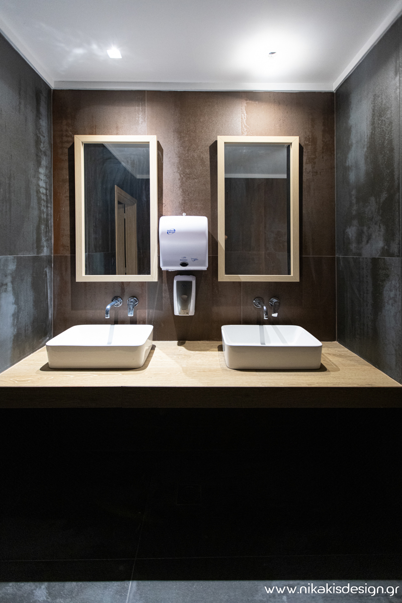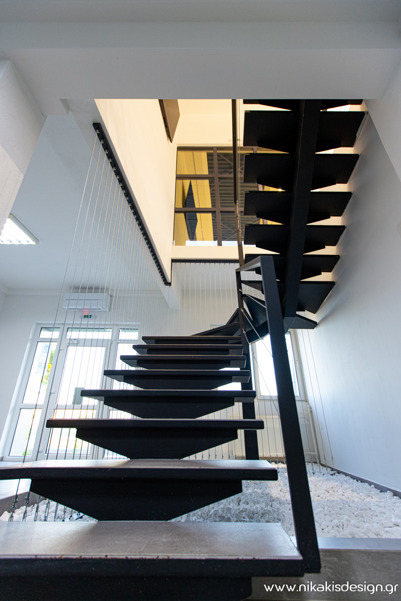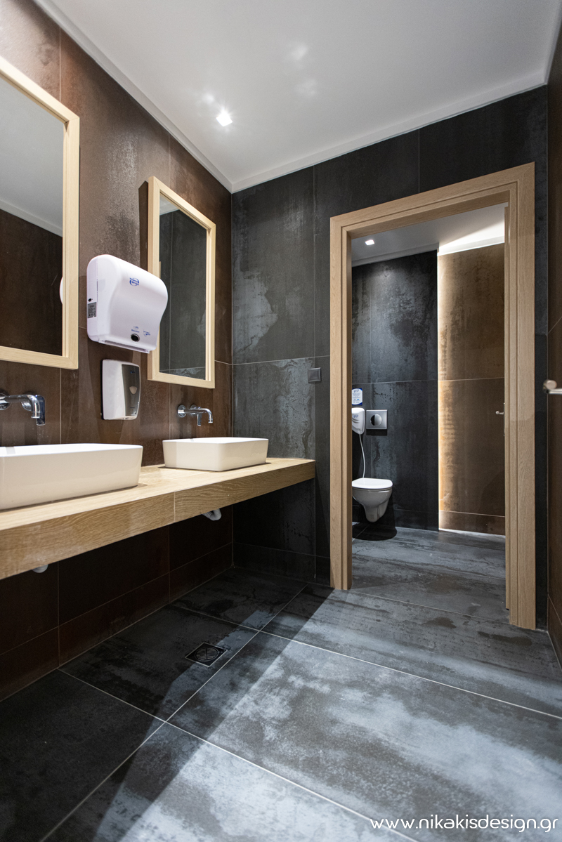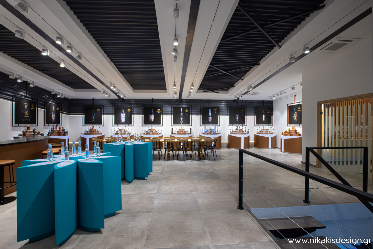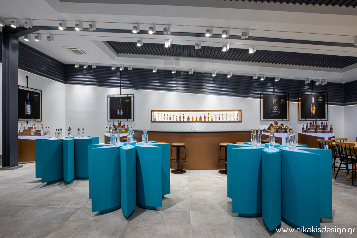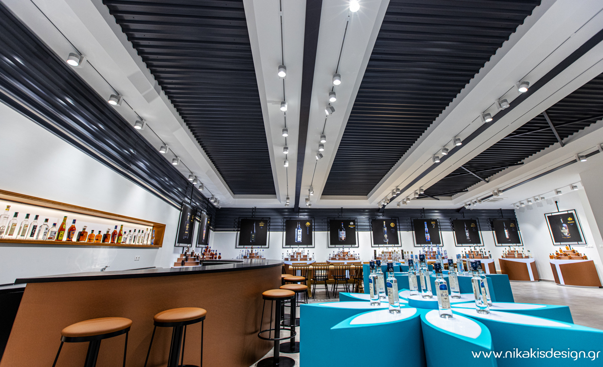 Περιγραφή: Στη βιομηχανική περιοχή της πόλης της Κομοτηνής ολοκληρώθηκε το νέο project της καθ’ ύψος επέκτασης του κτιρίου της Ποτοποιίας-Οινοποιίας Θράκης καθώς και της ανάπλασης της κύριας όψης του. Στον νεόδμητο 1ο όροφο ήταν απαραίτητη η δημιουργία ενός showroom για την έκθεση αλλά και την δοκιμή από τους νέους πελάτες της επιχείρησης των προιόντων της ποτοποιίας, αλλά και η δημιουργία ενός οργνωμένου meetingroom για τις απαραίτητες συναντήσεις μεταξύ των μετόχων αλλά και των νέων πελατών. Με βάση λοιπόν τον χαρακτήρα της ευρύτερης περιοχής κυριάρχησε στο σχεδιασμό το βιομηχανικό designτόσο στην εσωτερική διαμόρφωση του νέου ορόφου όσο και στο νέο περίβλημα του κτιρίου. Στο εσωτερικό πρωταγωνιστικό ρόλο έχει το μέταλλο, με κυρίαρχη τη μαύρη λαμαρίνα, καθώς και οι υφές του σκυροδέματος και του φυσικού ξύλου. Κομβική θέση κατέχει και ο σχεδιασμός του φωτισμού στο χώρο, ο οποίος συνδυάζοντας άμεσες και ισχυρές πηγές φωτός από τις οροφές με διάχυτους εσωτερικούς φωτισμούς από τα ειδικά σχεδιασμένα εκθετήρια των προϊόντων, πετυχαίνει ένα ιδανικό αποτέλεσμα για την ανάδειξη των προιόντων. Στο εξωτερικό οι μεγάλες αυστηρές επιφάνειες μεταλλικής επένδυσης ενισχύουν τον βιομηχανικό χαρακτήρα του κτιρίου, προσδίδοντάς του ταυτόχρονα μια ιδιαίτερη δυναμική που το κάνει να δεσπόζει στο περιβάλλον του.