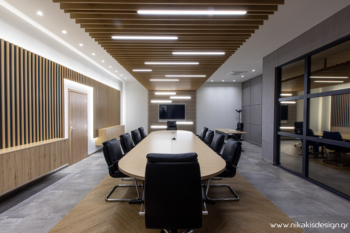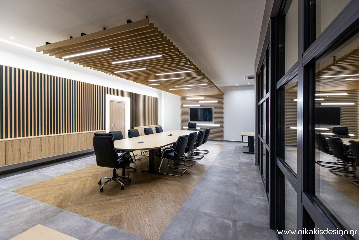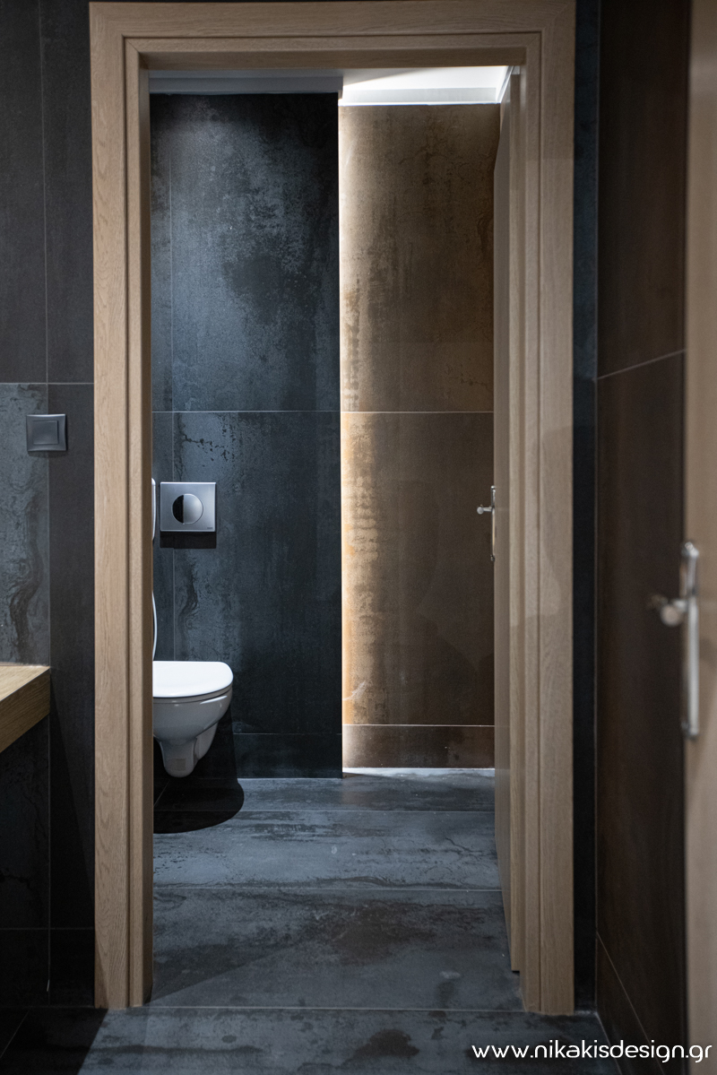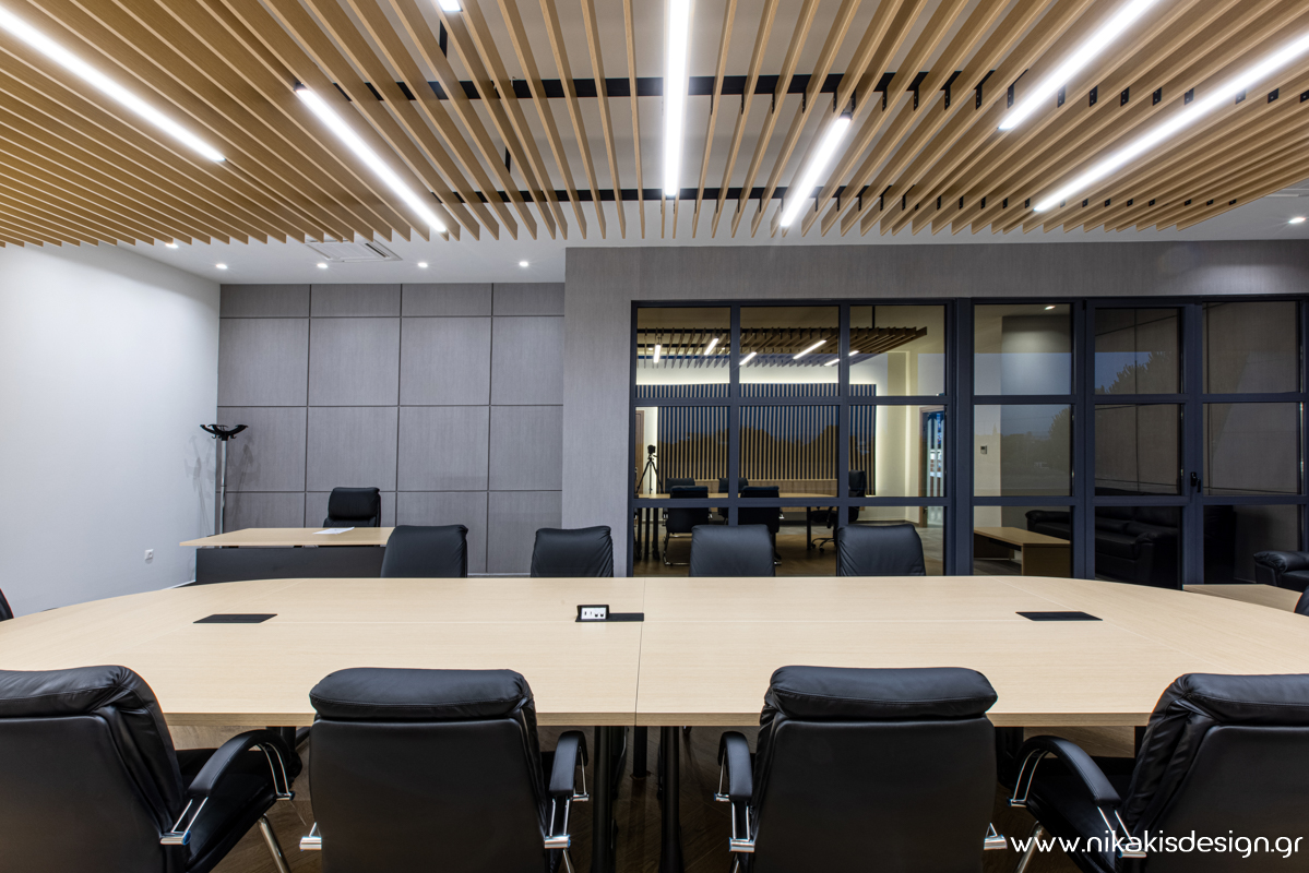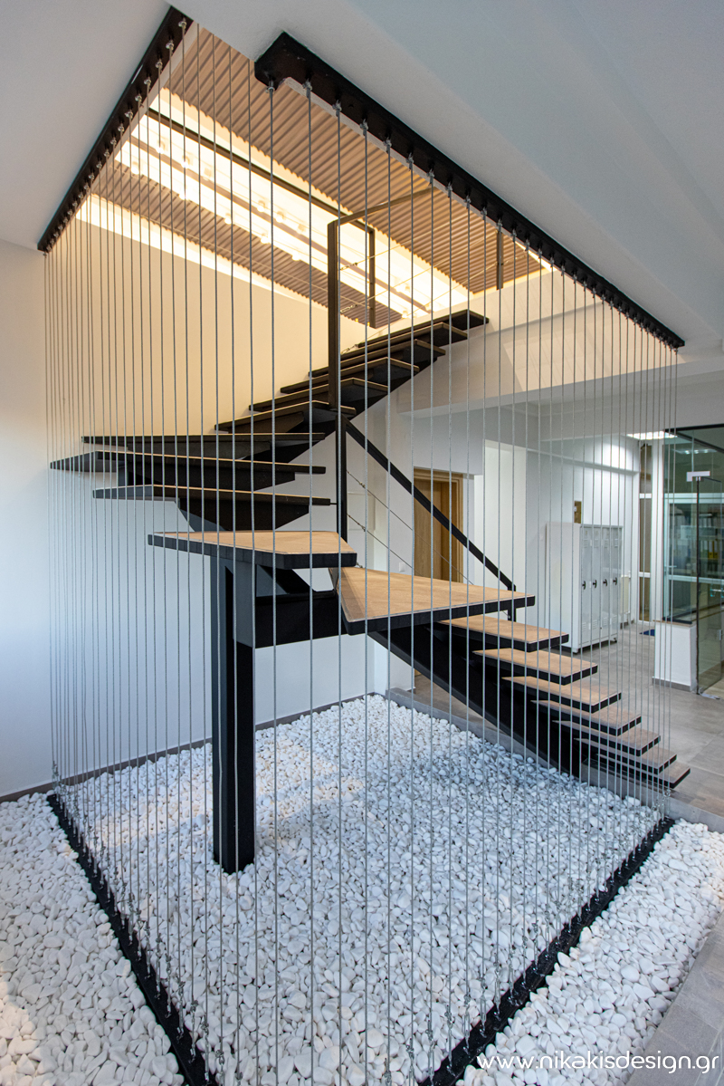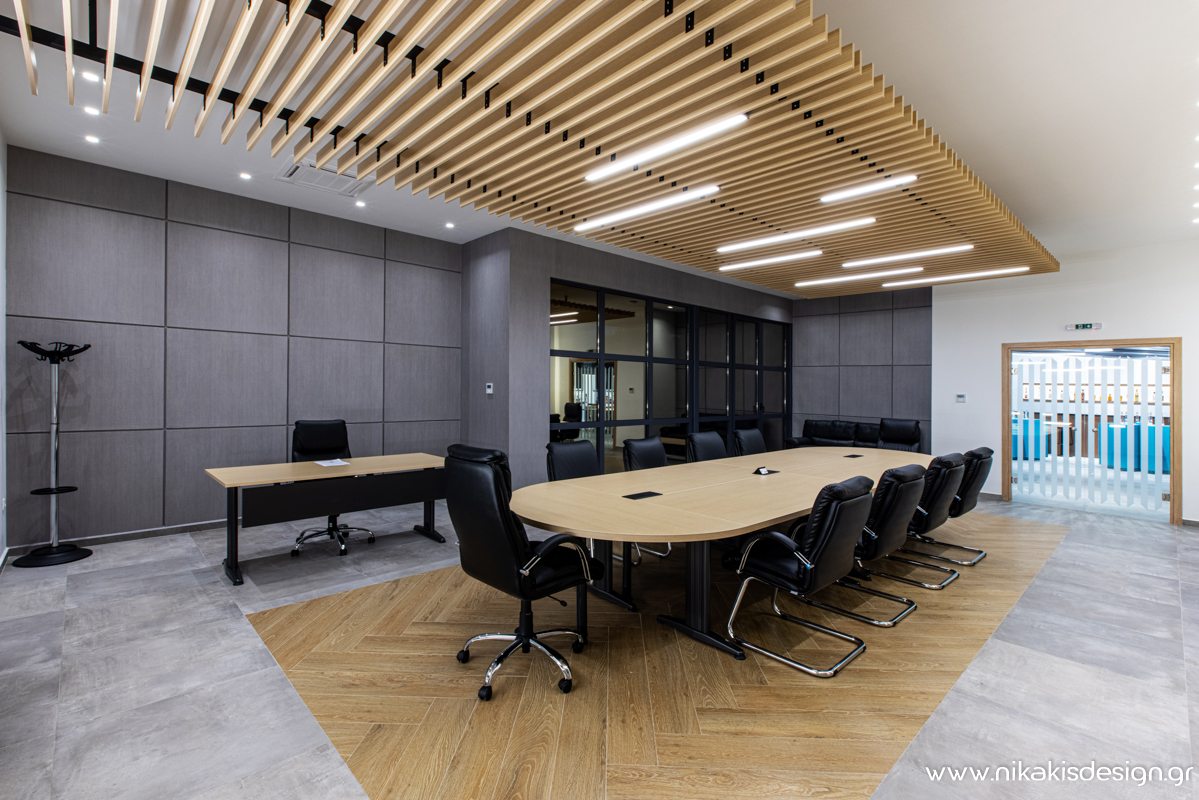Περιγραφή: Στη βιομηχανική περιοχή της πόλης της Κομοτηνής ολοκληρώθηκε το νέο project της καθ’ ύψος επέκτασης του κτιρίου της Ποτοποιίας-Οινοποιίας Θράκης καθώς και της ανάπλασης της κύριας όψης του. Στον νεόδμητο 1ο όροφο ήταν απαραίτητη η δημιουργία ενός showroom για την έκθεση αλλά και την δοκιμή από τους νέους πελάτες της επιχείρησης των προιόντων της ποτοποιίας, αλλά και η δημιουργία ενός οργνωμένου meetingroom για τις απαραίτητες συναντήσεις μεταξύ των μετόχων αλλά και των νέων πελατών. Με βάση λοιπόν τον χαρακτήρα της ευρύτερης περιοχής κυριάρχησε στο σχεδιασμό το βιομηχανικό designτόσο στην εσωτερική διαμόρφωση του νέου ορόφου όσο και στο νέο περίβλημα του κτιρίου. Στο εσωτερικό πρωταγωνιστικό ρόλο έχει το μέταλλο, με κυρίαρχη τη μαύρη λαμαρίνα, καθώς και οι υφές του σκυροδέματος και του φυσικού ξύλου. Κομβική θέση κατέχει και ο σχεδιασμός του φωτισμού στο χώρο, ο οποίος συνδυάζοντας άμεσες και ισχυρές πηγές φωτός από τις οροφές με διάχυτους εσωτερικούς φωτισμούς από τα ειδικά σχεδιασμένα εκθετήρια των προϊόντων, πετυχαίνει ένα ιδανικό αποτέλεσμα για την ανάδειξη των προιόντων. Στο εξωτερικό οι μεγάλες αυστηρές επιφάνειες μεταλλικής επένδυσης ενισχύουν τον βιομηχανικό χαρακτήρα του κτιρίου, προσδίδοντάς του ταυτόχρονα μια ιδιαίτερη δυναμική που το κάνει να δεσπόζει στο περιβάλλον του.