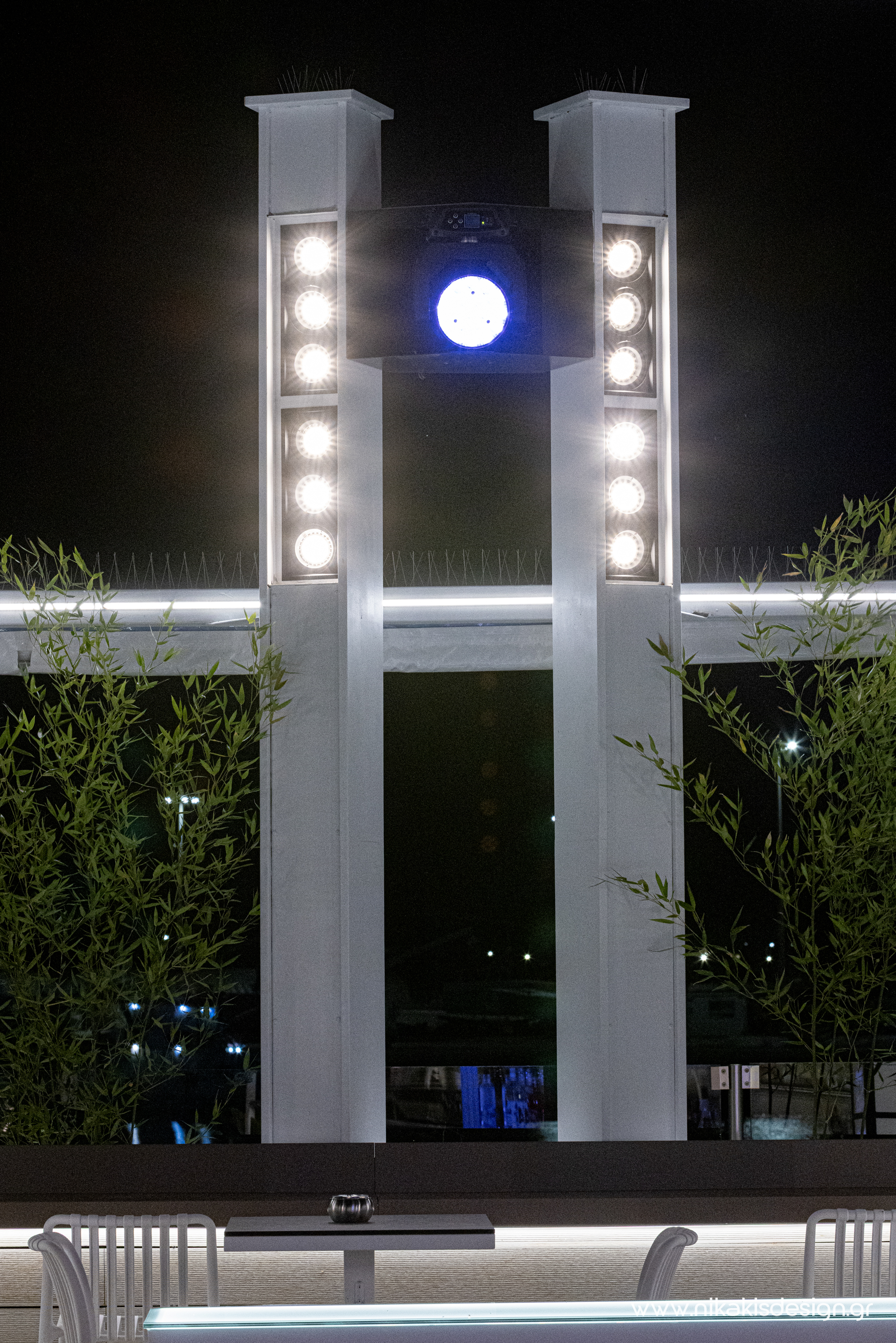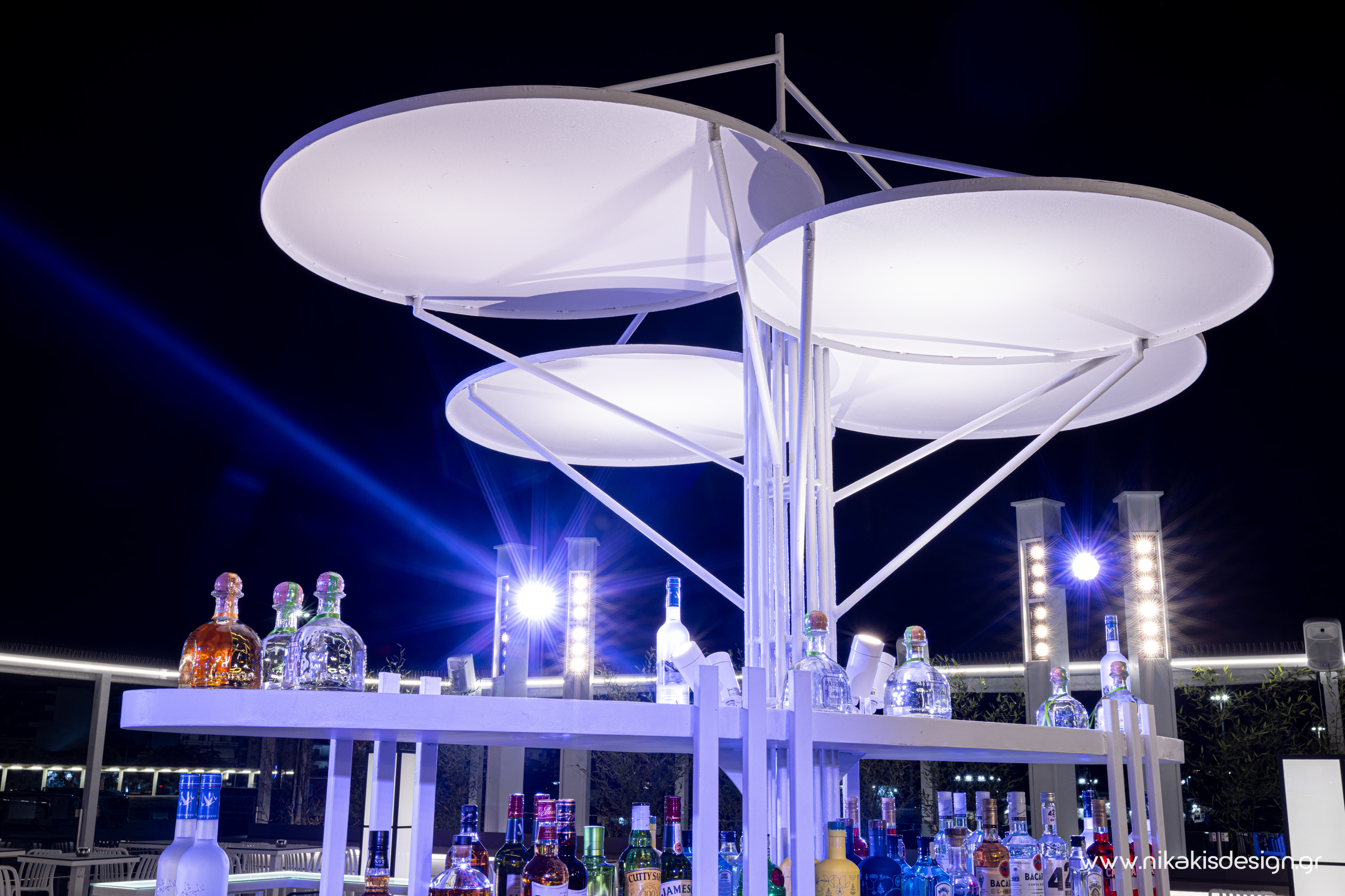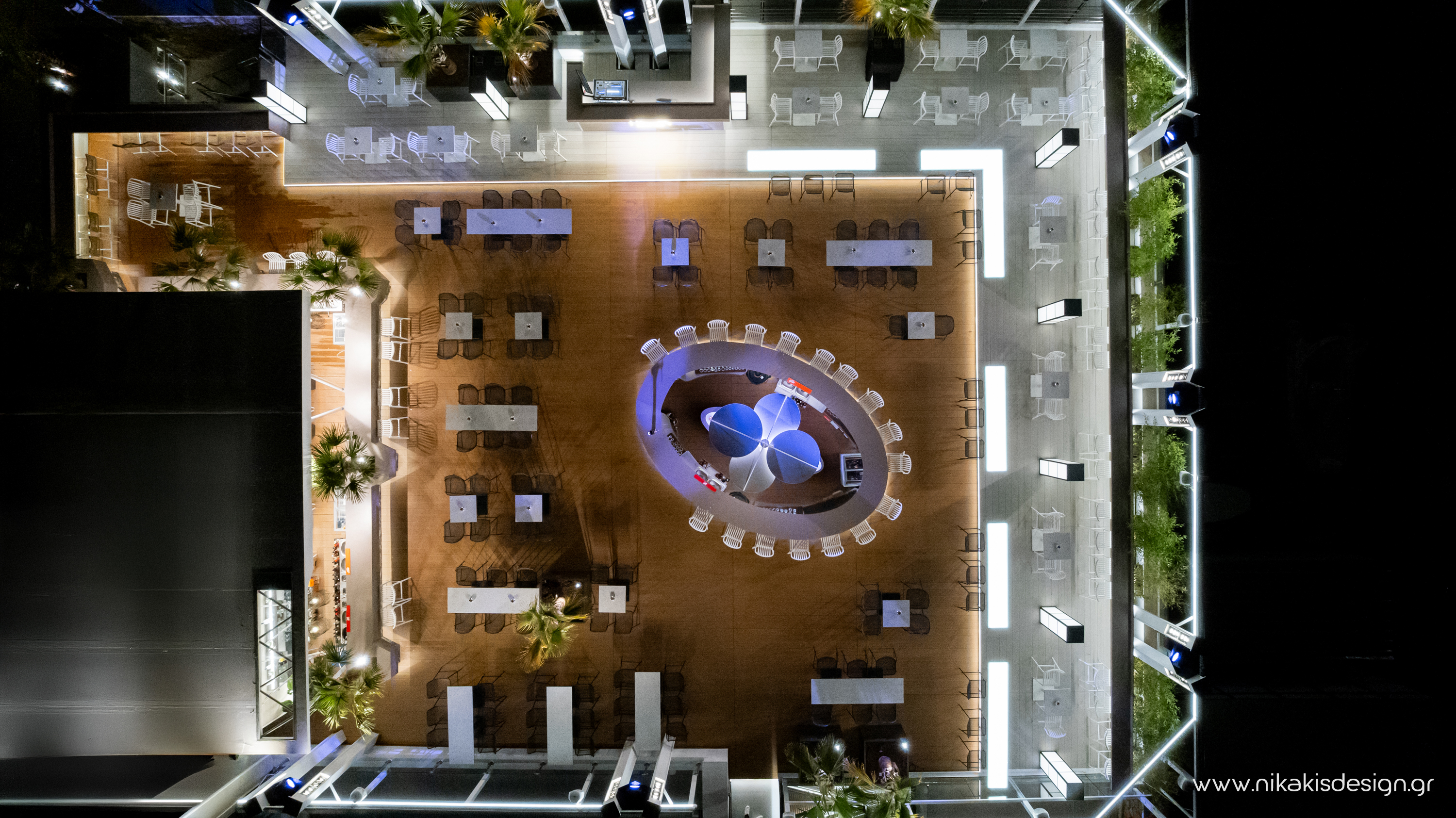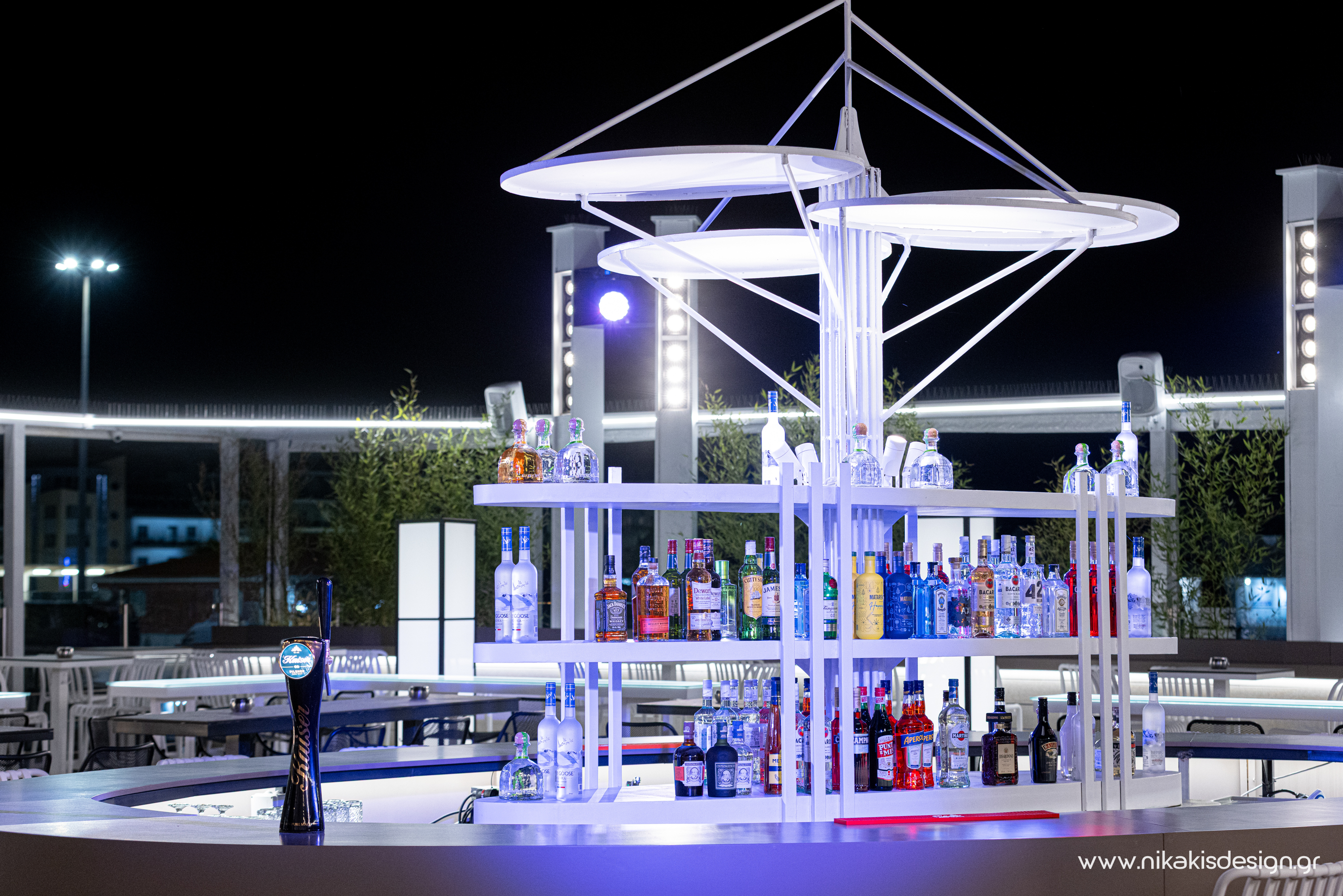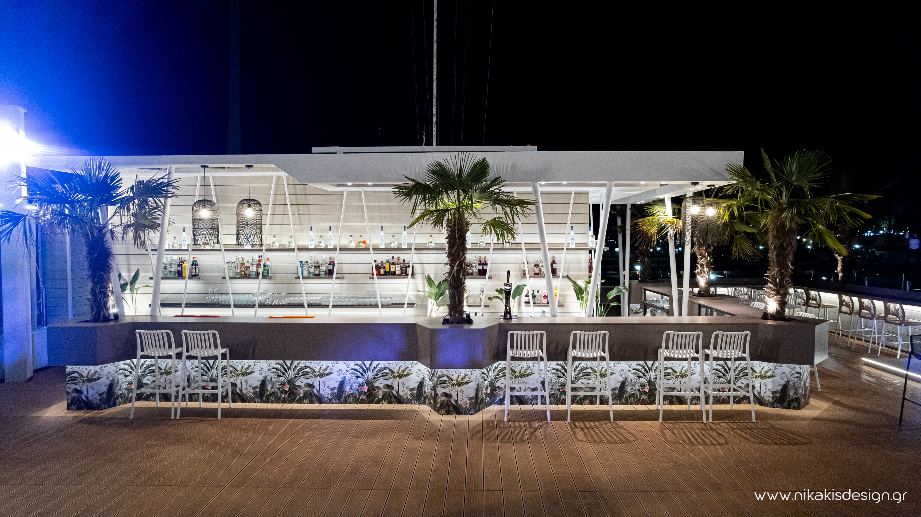 Περιγραφή: Πρόσφατα ολοκληρώθηκε μια ακόμη συνεργασία με το εμβληματικό café bar ΝΟΑ της Αλεξανδρούπολης με τον σχεδιασμό και υλοποίηση του νέου καλοκαιρινού Rooftop στο δώμα της επιχείρησης. Σημείο αναφοράς στον σχεδιασμό αποτελεί το μεγάλο οβάλ bar που δεσπόζει στο κέντρο του χώρου και οργανώνει γύρω του όλη την κίνηση των επισκεπτών αλλά και το μεγάλο γωνιακό bar που αποτελεί ένα νοητό όριο και στρέφει την οπτική του χώρου προς τη θάλασσα που περιβάλλει και ενισχύει την καλοκαιρινή ατμόσφαιρά του. Η στρατηγική τοποθέτηση φυτών προσθέτει μια τροπική νότα και η εγκατάσταση ποικίλων φωτιστικών σωμάτων δίνουν τη δυνατότητα έντονου αλλά και πιο ατμοσφαιρικού φωτισμού του χώρου με βάση τις εκάστοτε απαιτήσεις.